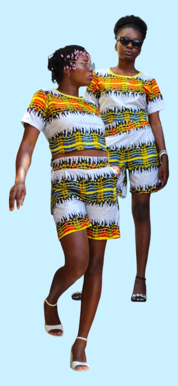 Laissez-vous séduire par cet ensemble en 100% wax. Si vous n'avez pas peur des couleurs, foncez!! Vous pouvez également y ajouter quelques accessoires.